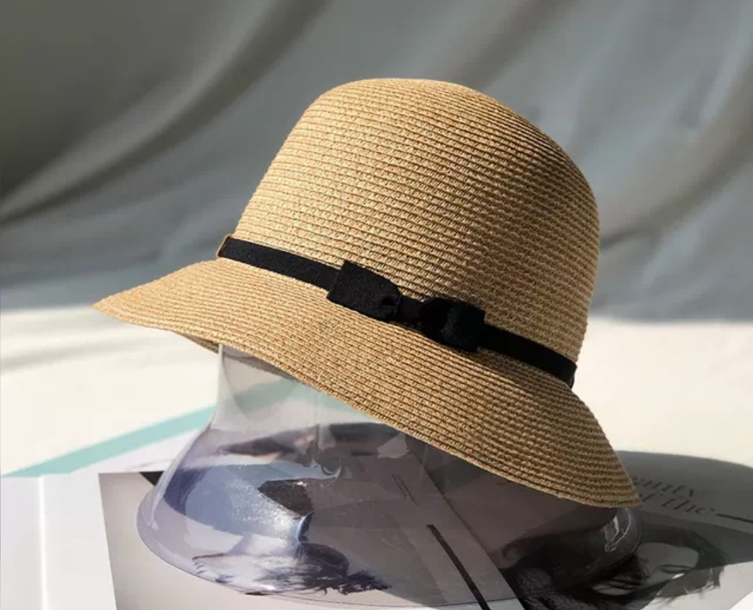 Mũ cói rơm vành phẳng nữ mùa hè phiên bản Hàn Quốc chống nắng UV cho kỳ nghỉ Nón đi biển Paris thời trang hàng đầu Pháp Chất liệu cói