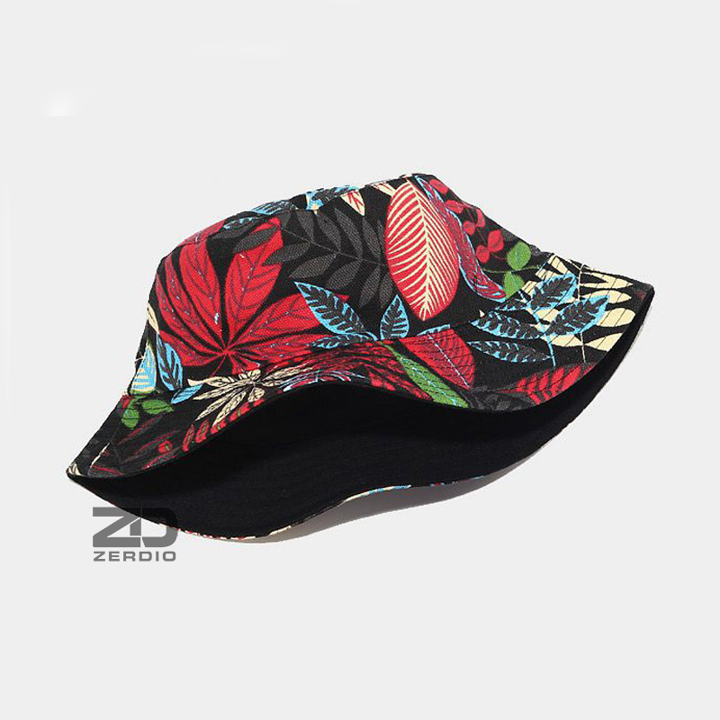 Nón vành tròn, mũ bucket 2 mặt đen trơn, họa tiết lá cá tính cho cả nam và nữ - ZERDIO