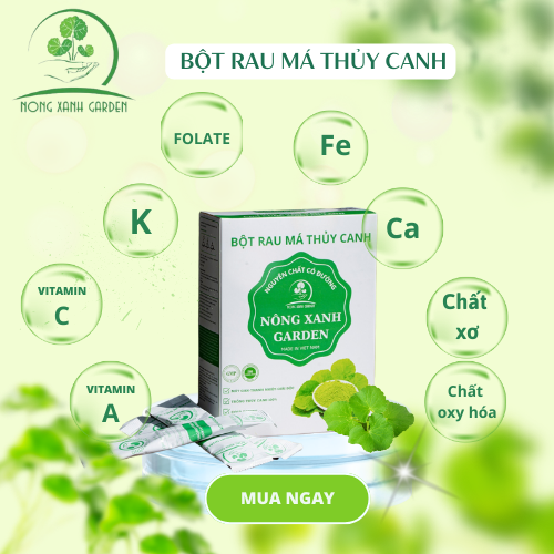 Hộp Bột Rau Má Thủy Canh Nguyên Chất Nông Xanh Garden 45GR Thực phẩm bổ sung Bột rau má với thành phần từ Rau má thủy canh tươi sau khi thu hoạch được làm sạch