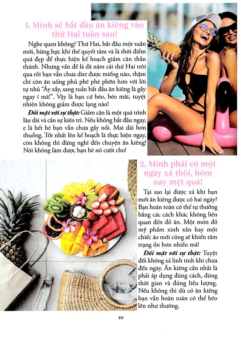 Đã đến lúc thay đổi rồi! Với cẩm nang này, ước mơ trở thành một nữ thần thiêu đốt mọi ánh nhìn ở bãi biển hay ở bất cứ đâu trong mùa Hè này sẽ không còn là điệp vụ bất khả thi. Với những “chiến lược” giảm cân, ăn kiêng khoa học, rõ ràng và chứng minh được tính hiệu quả, chắc chắn nàng sẽ có thêm quyết tâm trên con đường tìm lại vòng eo mơ ước.