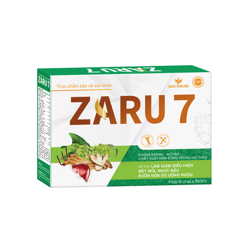 Nước Giải Rượu ZARU 7 Thanh Nhiệt Mát Gan Giúp Giảm Mệt Mỏi, Nhức Đầu, Buồn Nôn Do Rượu Bia Hộp 5 Chai Nước Giải Rượu ZARU 7 là một sản phẩm không thể