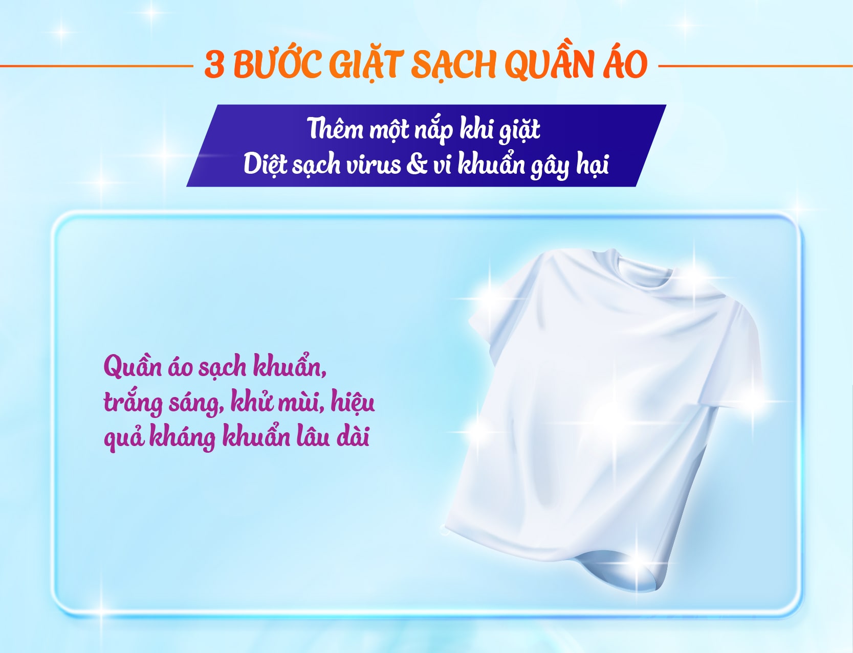 - Thêm nước kháng khuẩn khi giặt quần áo nâng cao hiệu quả diệt khuẩn & khử mùi