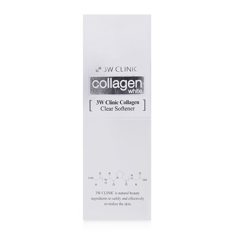 Nước hoa hồng trắng da 3W Clinic Collagen Clear Softener là sản phẩm chăm sóc da của thương hiệu 3W Clinic tại Hàn Quốc. Không chỉ nhận được sự ưu ái của các cô nàng xứ sở kim chi, ngay khi xuất hiện trên thị trước các nước Châu Á, 3W Clinic Collagen Clear Softener nhanh chóng lấy lòng của rất nhiều cô nàng. Với những tính năng vô cùng hấp dẫn như: se khít lỗ chân lông, ngăn ngừa khô da, kháng khuẩn, chống viêm da, ngừa lão hóa, chăm sóc da, 3W Clinic Collagen Clear Softener xứng đáng là dòng sản phẩm không thể thiếu trong tủ đồ của bạn.