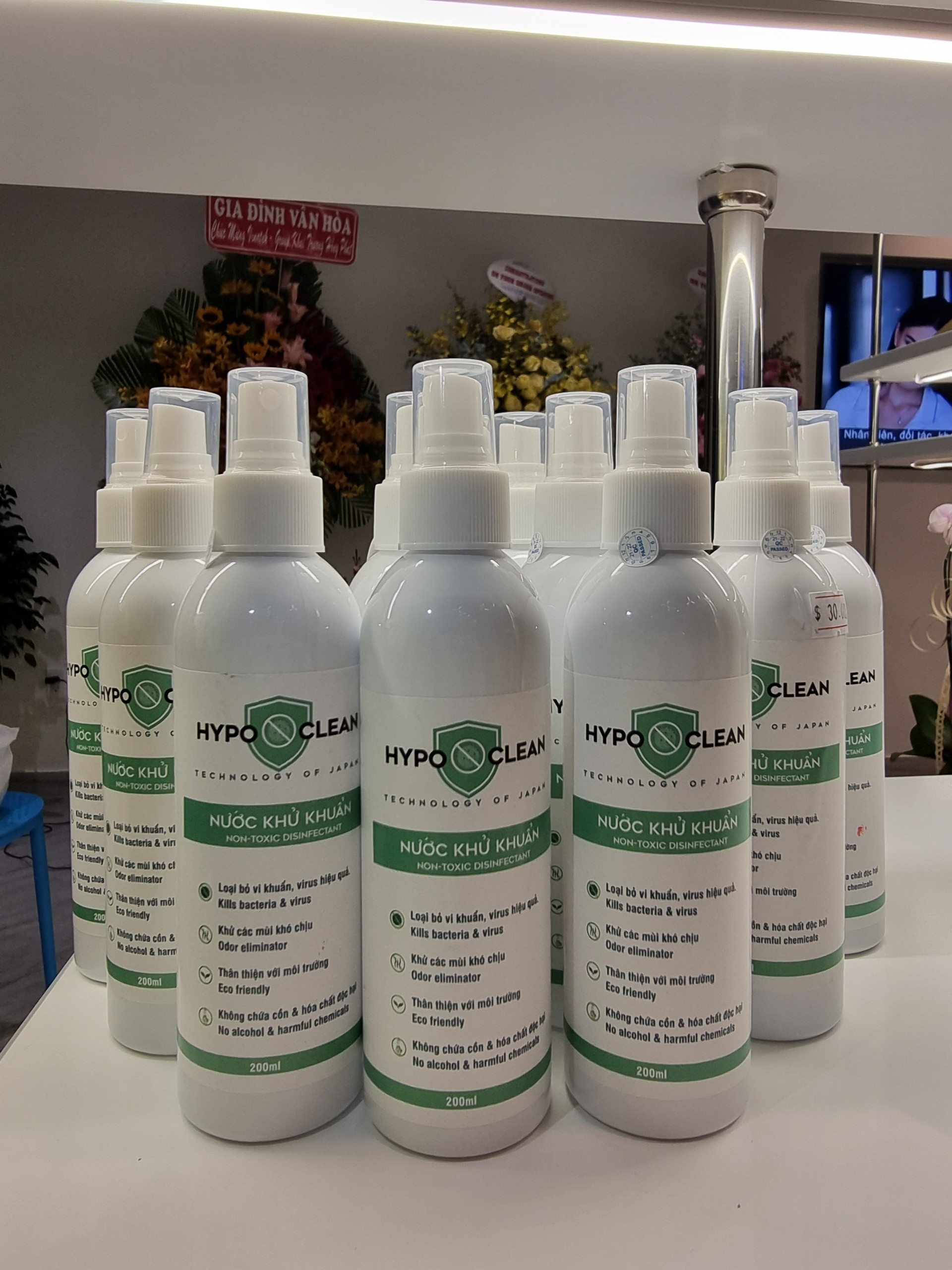 Mua tại Tiktok- [ ] Nước khử khuẩn HYPO CLEAN là dung dịch Acid Hypochlorous (HOCI) nồng độ 100ppm, được sản xuất bởi công nghệ diện phân cải tiến của Kanazawa - Nhật Bản từ nước, muối tỉnh khiết, không chứa cồn và các hóa chất độc hại. Dùng dịch Acid Hypochlorous (HOCI) đã được EPA (Cục Bảo vệ Môi trường Hoa Kỳ), NITE (Viện Công nghệ và Đánh giá quốc gia ở Nhật Bản) chứng nhận có khả năng hạn chế virus SARS-CoV-2 hiệu quả; được FDA (Cục quản lý Thực phẩm và Dược phẩm Hoa Kỳ) cho phép sử dụng trực tiếp trên thực phẩm như rau củ, thịt, hải sản. --HYPO CLEAN: phù hợp để khử khuẩn và khử mùi tại văn phòng, nhà ở, siêu thị, trung tâm thương mại, nhà xưởng, nha hàng, khách sạn, thiết bị chế biến thực phẩm, trung tâm Gym, trường học - nhà trẻ, dụng cụ dạy học, đó chơi trẻ em, đồ dùng nhà bếp và trong chế biến sơ chế thực phẩm. — CÔNG DỤNG HƯỚNG DẪN SỬ DỤNG: Khử khuẩn bề mặt: Lau ướt trực tiếp dung dịch lên bề mặt hoặc bình xịt phủ bề mặt cần khử khuẩn. Sau ít nhất 20 giây lau lại bằng khăn khô hoặc có thể để khô tự nhiên. Khứ khuẩn không khí và khử mùi: Phun sương dung dịch với lượng 50ml/m3 vào không gian cần khử khuẩn, khử mùi. —-Trong chế biến thực phẩm: Rửa rau củ, thịt, cá, hải sản với nước sạch. Sau đó ngâm hoặc rửa trực tiếp với dung dịch được pha loãng với nước sạch theo tỷ lệ 1:1 trong vòng ít nhất 20 giây, để ráo hẳn rồi sử dụng để chế biến hoặc đem bảo quản. Sử dụng vệ sinh tay Pha loãng dung dịch với nước sạch theo tỷ lệ 1:1 dùng để rửa hoặc xịt trực tiếp lên tay. Khử 99,9% nấm mốc, vi khuẩn, bào tử vi khuẩn và virus gây bệnh, hiệu quả hơn 80 lần so với nước tấy chlor thông thường. Khử các mùi khó chịu như. mùi ẩm mốc, mùi mồ hôi, mùi Amoniac, => THÀNH PHÂN: Nước tinh khiết, Acid Hypochlorous (HOCI) nồng độ 100ppm =>BẢO QUẢN: Để nơi khô ráo, thoáng mát, tránh ánh nắng mặt trời chiếu trực tiếp. THÔNG TIN CÁNH BẢO AN TOÀN: Để xa tầm với của trẻ em. Sản phẩm không dùng để uống.