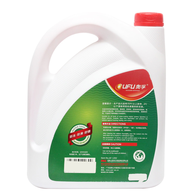 - Nước Làm Mát Động Cơ Màu Đỏ OUFU AF-1202 4L là sản phẩm được nghiên cứu để chống sét, chống mòn cho thùng két, đồng thời giảm nhiệt, ngăn ngừa tình trạng thùng két quá nóng trong quá trình sử dụng. Sản phẩm đã được kiểm chứng bởi các trung tâm hàng đầu, không những giúp bạn yên tâm hơn về chất lượng mà còn cả về độ an toàn khi sử dụng.