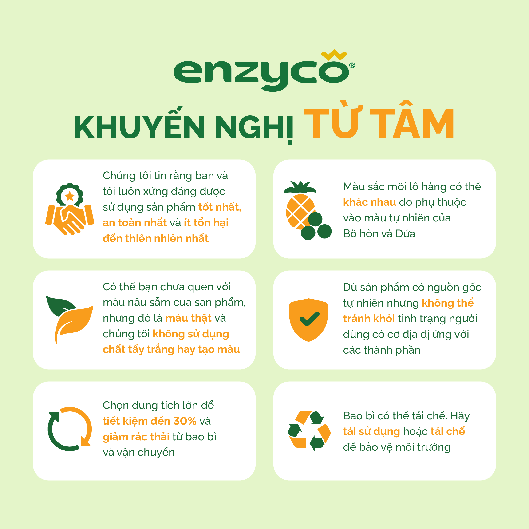 - Dứa ủ lên men theo phương pháp độc đáo của Enzyco sẽ tạo ra Enzyme Bromelain và dung dịch có tính axit hữu cơ khá mạnh giúp tẩy rửa, làm sạch vết bẩn và dầu mỡ rất hiệu quả. (Chúng tôi chỉ sử dụng vỏ dứa để tạo enzyme, giúp hạn chế rác thải nông nghiệp.)