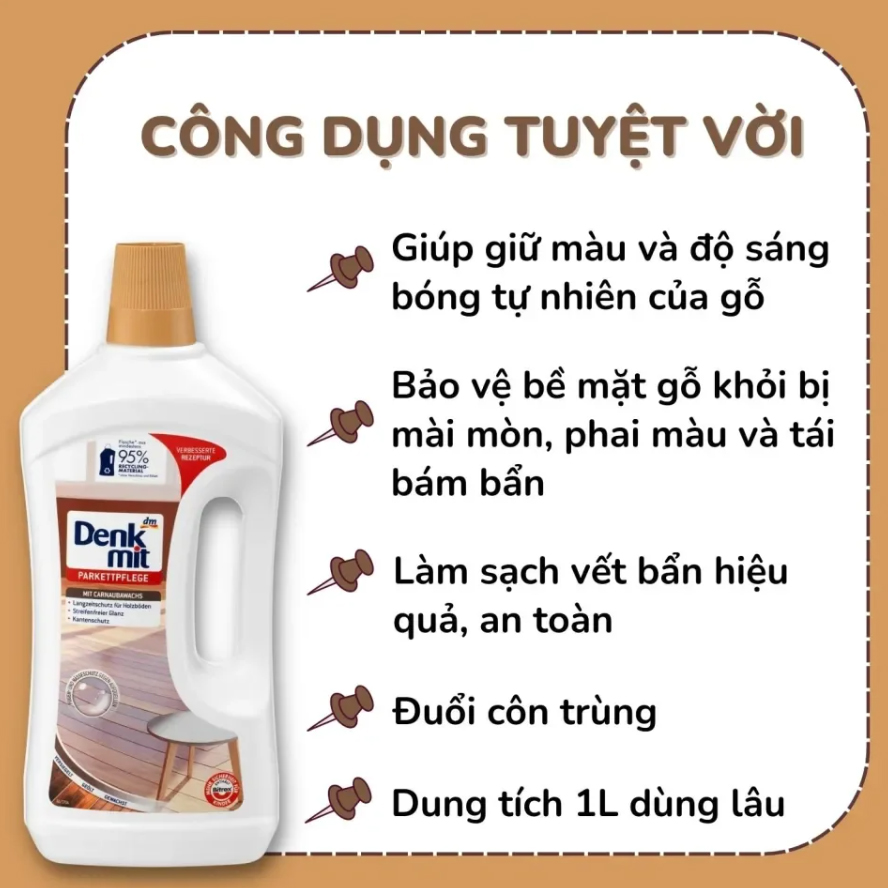 ✨Nước lau sàn gỗ Denkmit Đức 1 lít sạch bóng, Đuổi côn trùng, Bảo vệ sàn gỗ bền đẹp