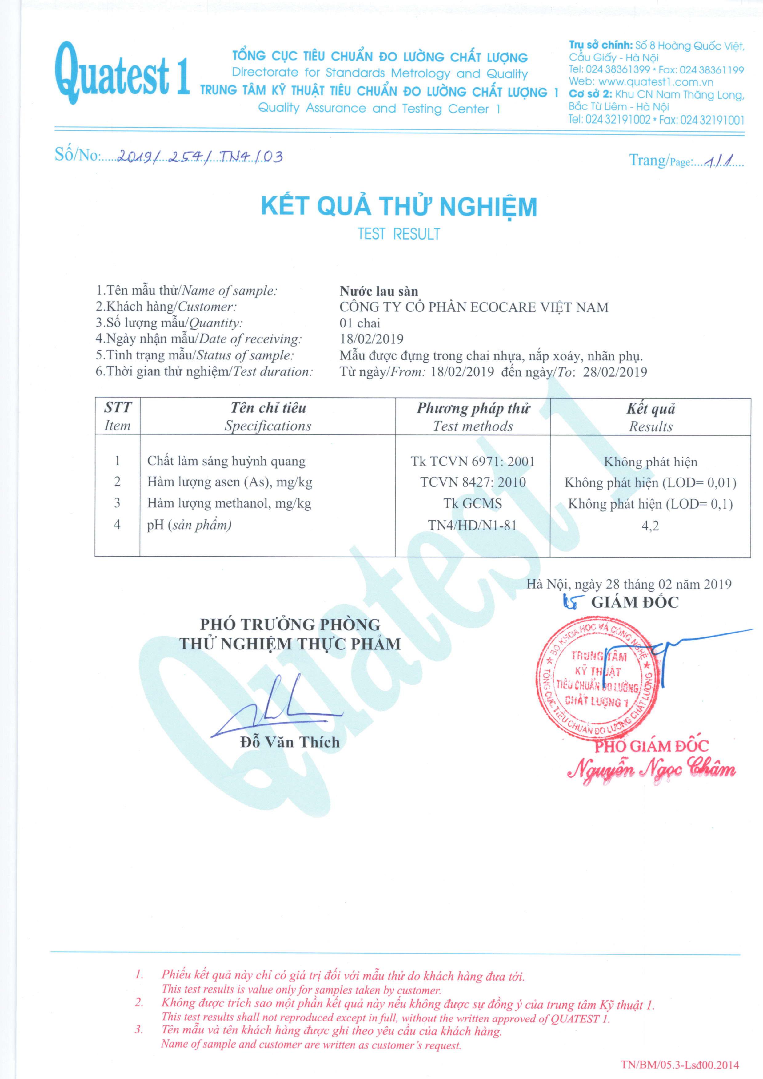 - Sản phẩm Nước lau sàn hữu cơ Bồ hòn Ecocare cam kết: