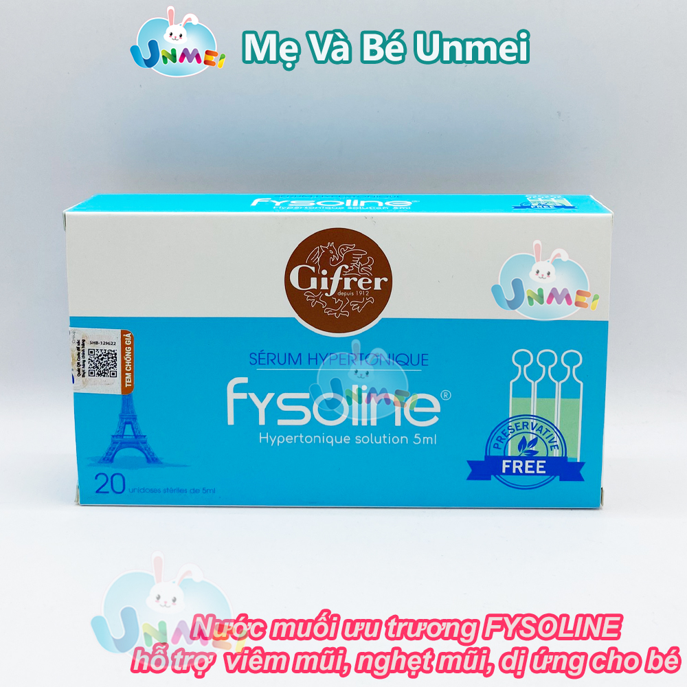 Nước muối ưu trương FYSOLINE hỗ trợ viêm mũi, nghẹt mũi, dị ứng cho bé (Hộp xanh 20 ống x 5ml) Nước muối sinh lý Pháp Kháng khuẩn hỗ trợ viêm mũi, nghẹt mũi