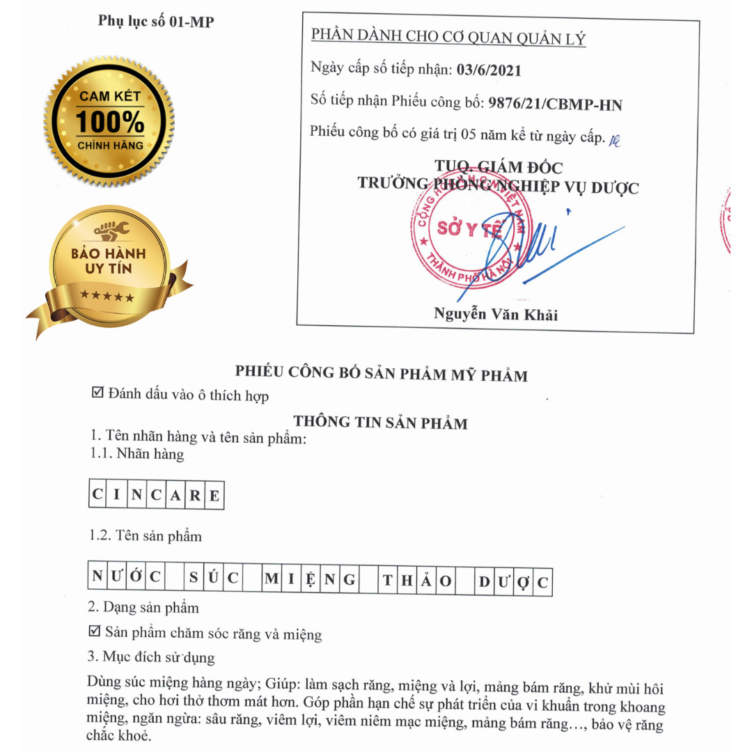✨Nước súc miệng Thảo dược Cincare - Nhỏ gọn tiện lợi - Khử khuẩn, thơm miệng mọi lúc mọi nơi (100ML)