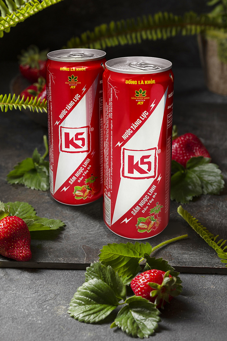 ✨Nước Tăng Lực K5 Sâm Ngọc Linh Lon Lẻ Vị Dâu Tây Đỏ (320ml/Lon)