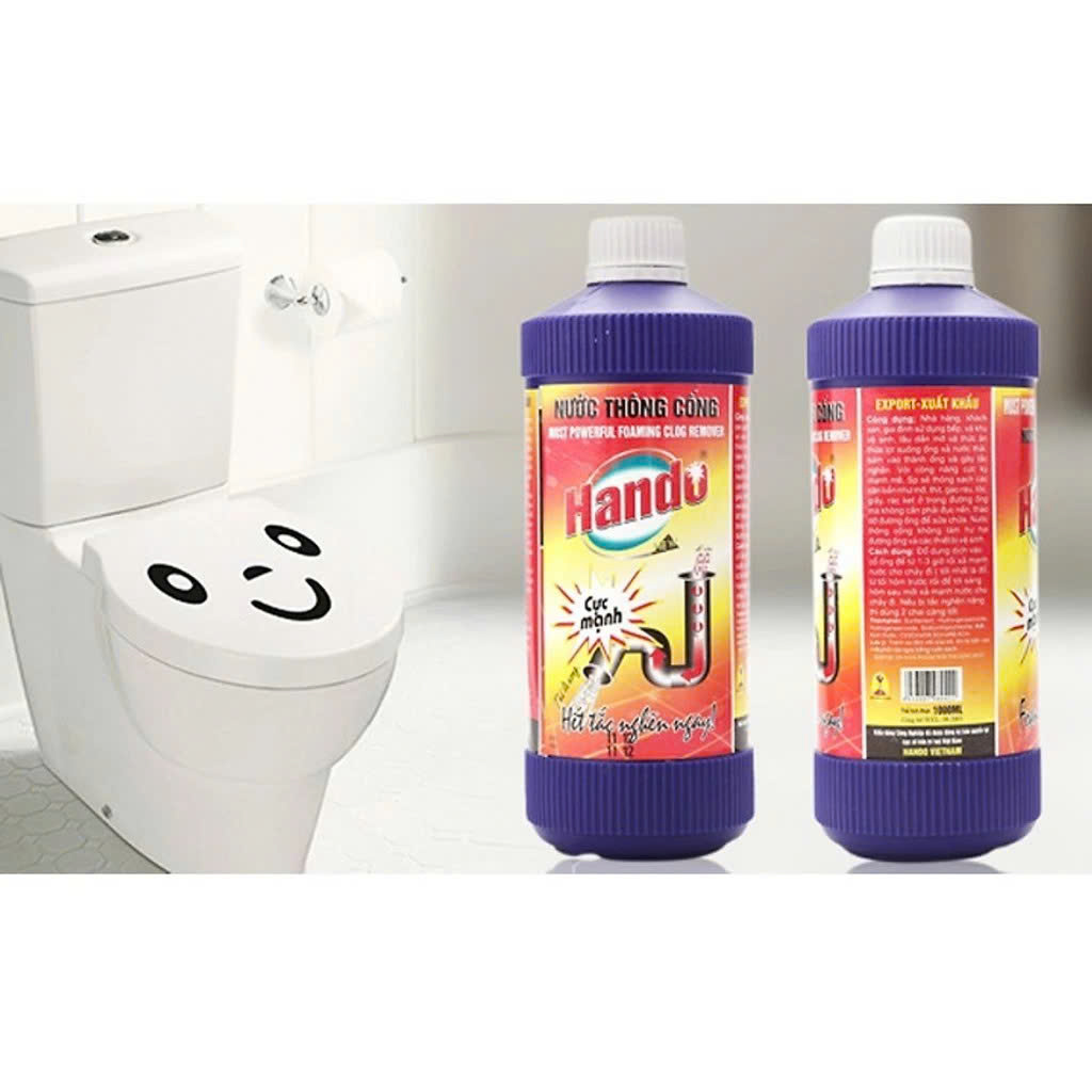 Thông sạch các cặn bẩn kẹt trong đường ốngNước thông tắc đường ống thoát nước Hando 1000ml xuất khẩugồm các hoạt chất đặc biệt có tác dụng làm mềm và phân huỷ các tạp chất