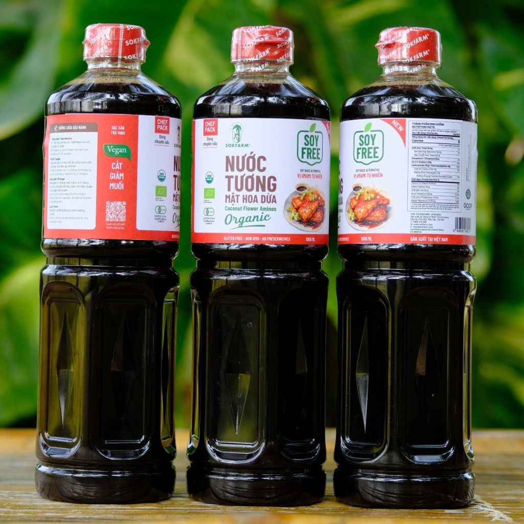 NƯỚC TƯƠNG MẬT HOA DỪA ORGANIC SOKFARM NAY CÓ THÊM "DÒNG CHUYÊN NẤU" THỂ TÍCH 1 LÍT Nước tương Mật hoa dừa organic Sokfarm Dòng chuyên nấu (Chef pack) thể tích 1L là dòng nước