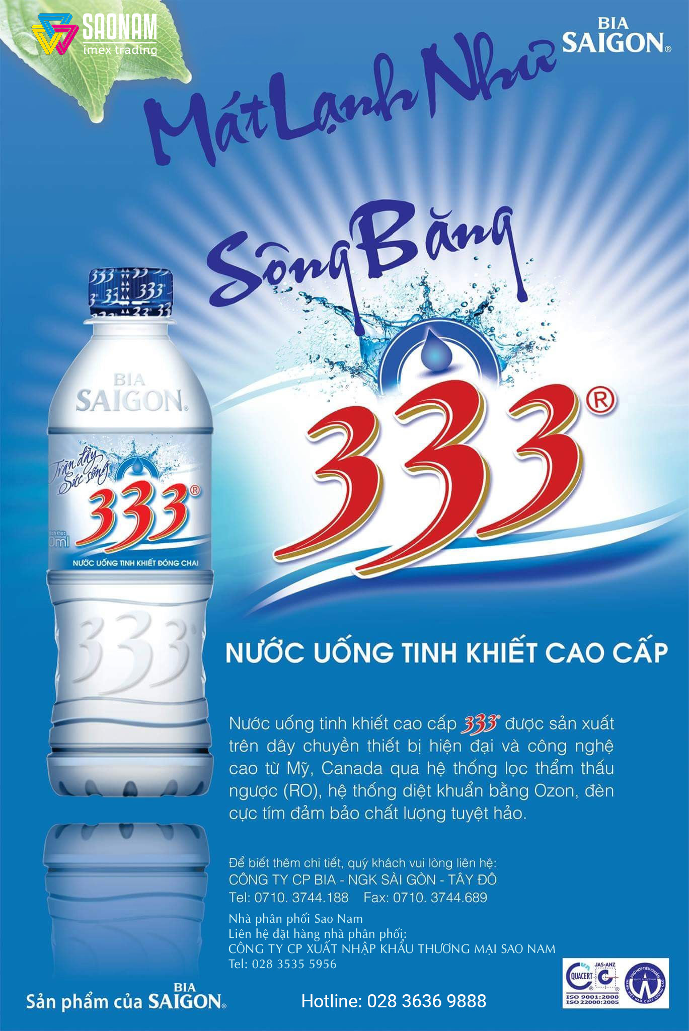 SẢN PHẨM NƯỚC UỐNG ĐÓNG CHAI CAO CẤP SÀI GÒN WATER, 333 WATER