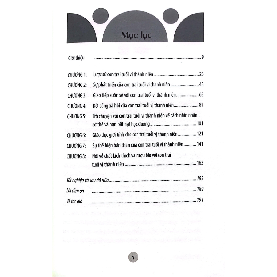 Chương 7: Sự thể hiện bản thân của con trai tuổi vị thành niên. Con trai bạn đang trải qua rất nhiều thay đổi về mặt sinh lý trong thời kỳ này. Cậu bé cũng sẽ chủ động thay đổi ngoại hình, bao gồm cả tóc tai và quần áo, cũng như sở thích và tình bạn trong giai đoạn này.