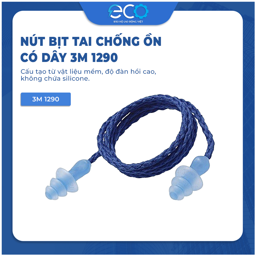 Nút Tai Chống Ồn 3M 1290 Có Dây - Nút Chống Ồn, Độ Giảm Ồn 29dB, Chất liệu Silicone Mềm Mại, Bảo Vệ Thính Giác