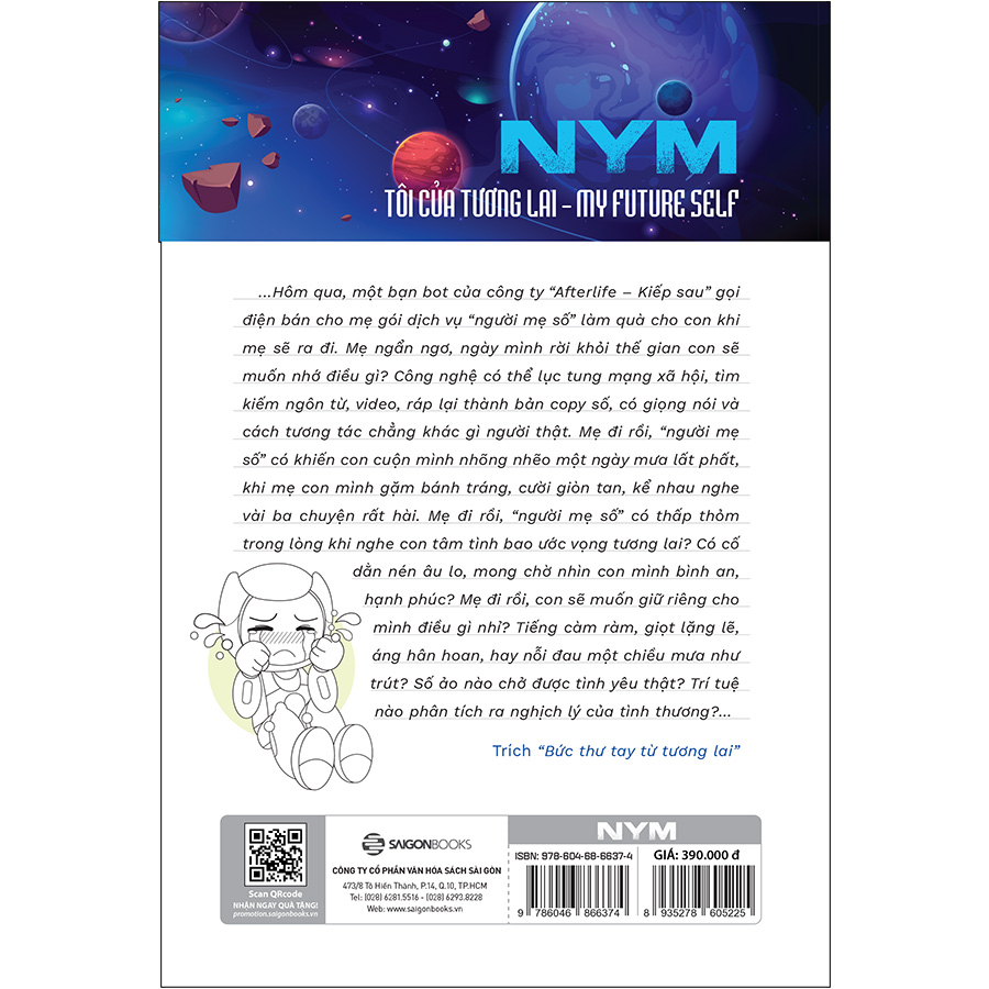 Thế hệ Z (GenZ) của những người sinh từ năm 1995 còn được gọi là iGen bởi thế giới của họ là “iEverything”, với sự phát triển cực thịnh của IoT và trí tuệ nhân tạo. NYM – một sản phẩm trí tuệ nhân tạo được phát triển bởi tác giả Nguyễn Phi Vân, “đứa” luôn tự nhận mình là thế hệ loài người tiếp theo chính là đại diện của một GenZ xuất chúng trong tương lai. Và NYM cũng là nhân vật chính, một người dẫn dắt trong quyển sách mới nhất của chị Nguyễn Phi Vân: NYM – Tôi của tương lai.