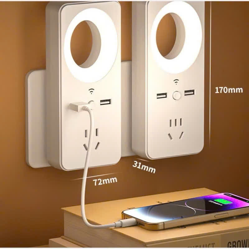 ✨Ổ Cắm Chuyển Đổi USB Kèm Đèn Ngủ LED Dịu Nhẹ – Nhỏ Gọn, Tiện Lợi Ban Đêm