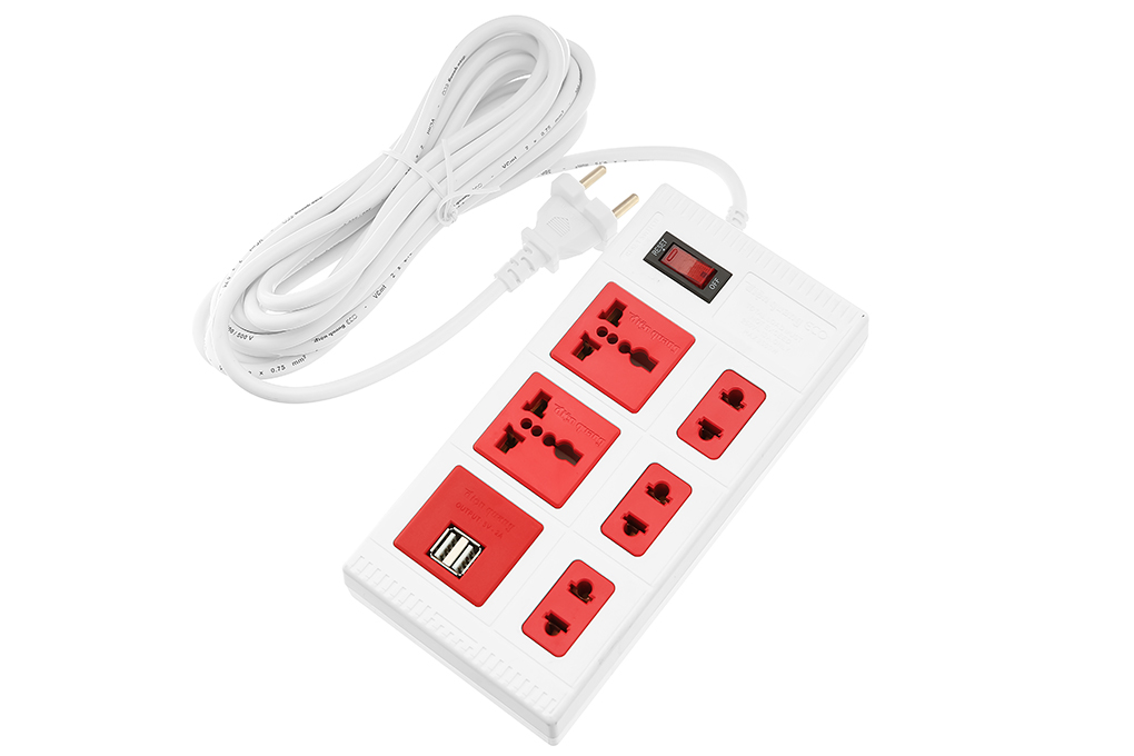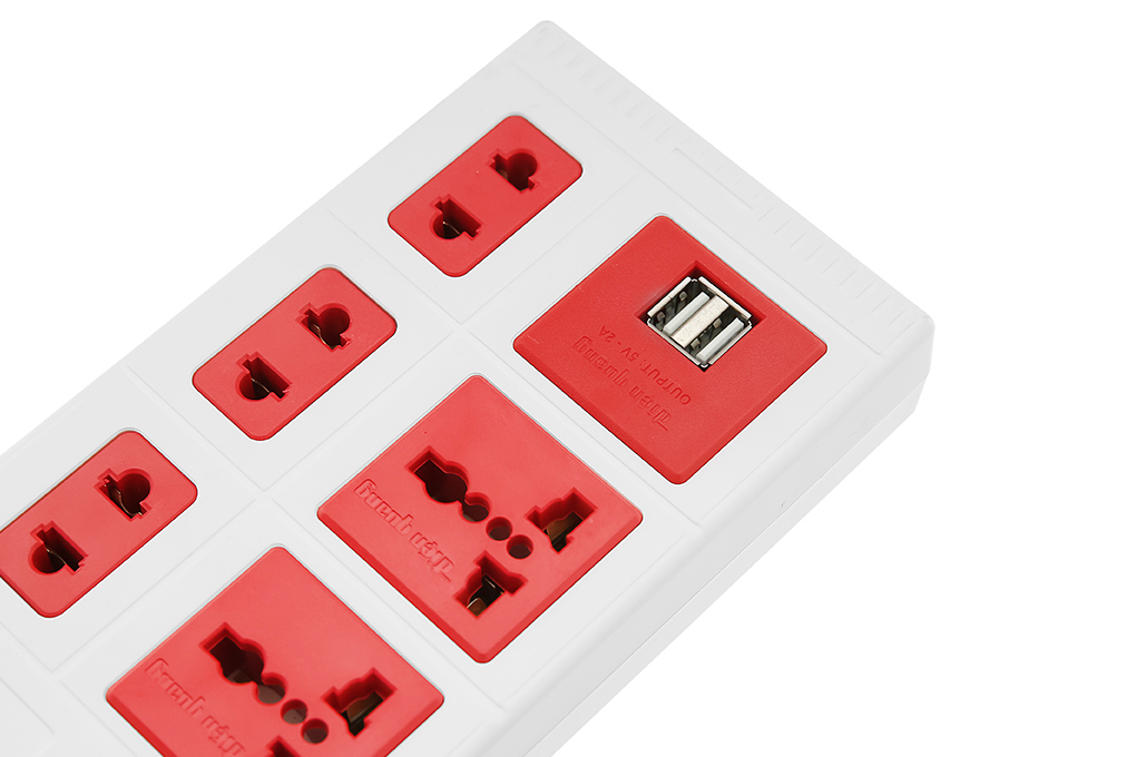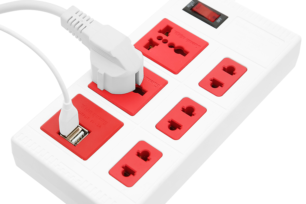 Ổ cắm điện màu trắng - đỏ thiết kế chắc chắn, nhỏ gọn, thẩm mĩ cao