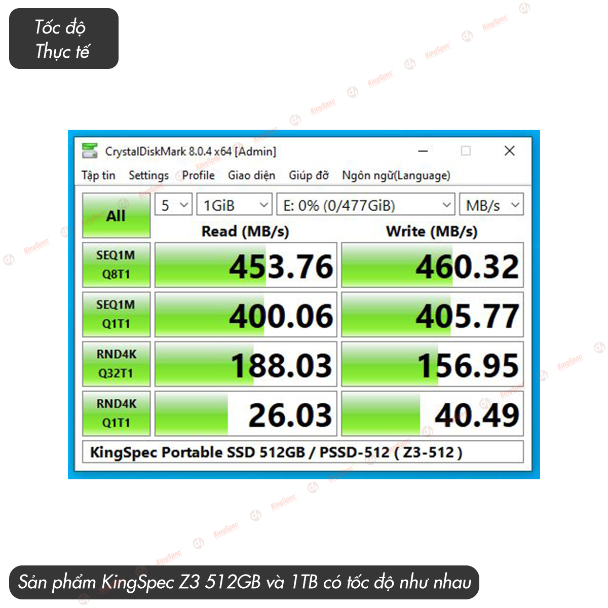 - Tốc độ: Đọc 454Mb/s, Ghi 460Mb/s