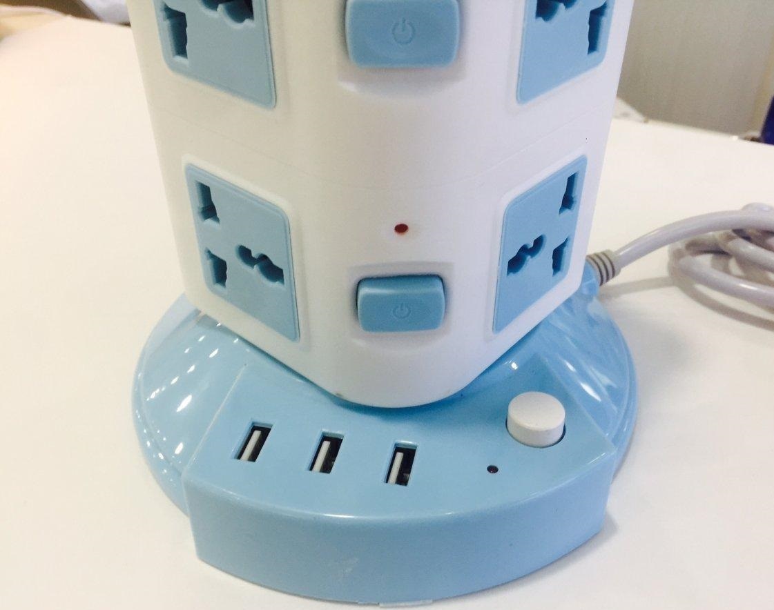 Ổ điện đa năng 3 tầng, có 12 lỗ cắm và 3 cổng usb, có công tắc bật tắt, thích hợp mọi loại phích cắm khác nhau - Hàng chính hãng
