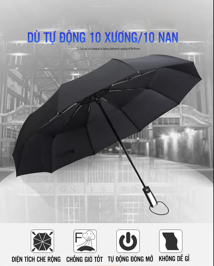 Ô gấp gọn, Ô dù tự động 10 nan chống lật tán rộng 106cm cho 2-3 người siêu chắc chắn loại đẹp