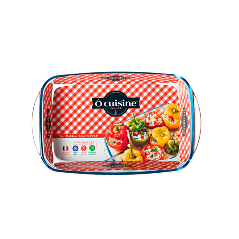 Được làm từ gốm thủy tinh borosilicat, sản phẩm có thể sử dụng trong tủ đông -4ºC và chịu nhiệt lên tới 300ºC. Khay bánh hình chữ nhật chuyên dùng để nướng thực phẩm và có thể sử dụng trong lò vi sóng hoặc lò nướng.