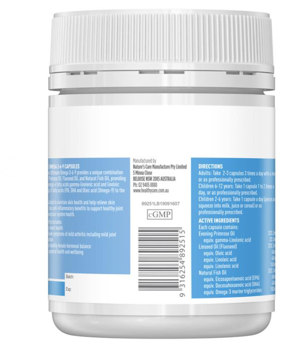 - Viên uống được chiết xuất từ các thành phần tự nhiên do đó rất tốt và lành tính với sức khỏe người sử dụng. Bên cạnh đó sản phẩm Healthy Care Ultimate Omega 3-6-9 200 viên đã được kiểm duyệt chặt chẽ trước khi đưa ra thị trường vì vậy tốt cho sức khỏe của người tiêu dùng. Sản phẩm bán trên Tiki luôn là mẫu mới nhất, hình ảnh sản phẩm sẽ được cập nhật theo từng lô hàng nhập kho Omega 3-6-9 Healthy Care Ultimate 1000mg của Úc có tốt không? ️ Hỗ trợ tăng cường sức khỏe cho cơ thể, hỗ trợ sức khỏe tim mạch và huyết áp. ️ Healthy Care Ultimate Omega 3-6-9 hỗ trợ tốt cho sức khỏe của phụ nữ trong giai đoạn tiền mãn kinh. ️ Hỗ trợ làm giảm các dấu hiệu liên quan tới xương khớp. ️ Healthy care omega 3 6 9 hỗ trợ làm đẹp da ️ Hỗ trợ tăng cường trí nhớ, tăng khả năng tập trung giúp quá trình làm việc trở nên hiệu quả hơn. ️ Hỗ trợ tăng cường sức đề kháng giúp cơ thể khỏe mạnh và phát triển. ️ Dạng viên nang mềm dễ dàng sử dụng️ Hộp 200 viên đủ dùng cho 1 liệu trình Thành phần: Mỗi viên Omega 3-6-9 của Úc chứa: