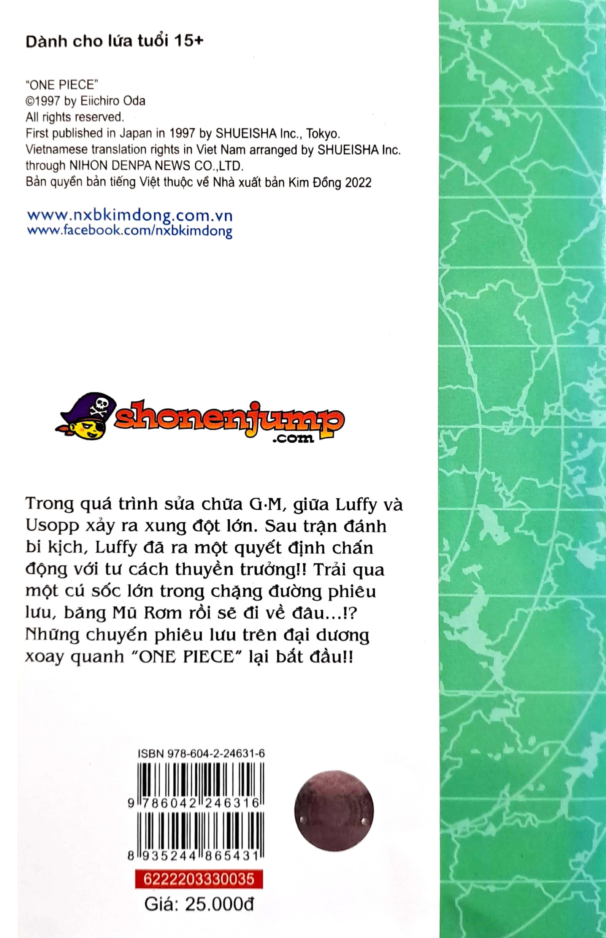 Mua tại TiktokTrong quá trình sửa chữa G.M, giữa Luffy và Usopp xảy ra xung đột lớn. Sau trận đánh bi kịch, Luffy đã ra một quyết định chấn động với tư cách thuyền trưởng!! Trải qua một cú sốc lớn trong chặng đường phiêu lưu, băng Mũ Rơm rồi sẽ đi về đâ!? Những chuyến phiêu lưu trên đại dương xoay quanh "ONE PIECE" lại bắt đầu!!