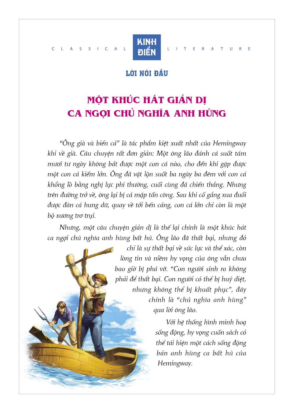 Với những hình ảnh minh họa sinh động, hy vọng cuốn sách có thể hiện lại một cách sinh động bản anh hùng ca bất hủ của Hemingway.
