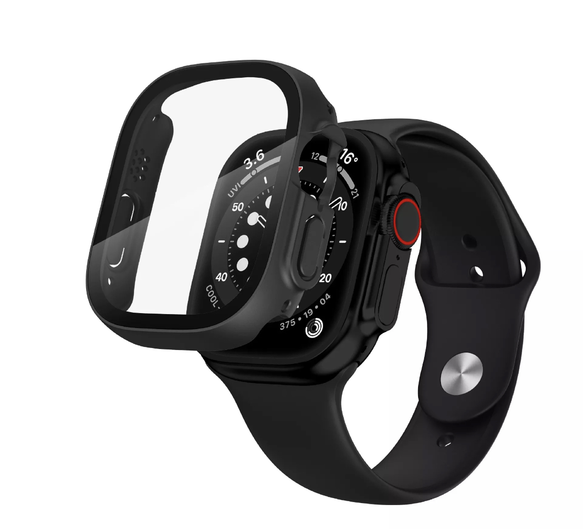 Màu sắc: Đen / Bạc Được làm từ PC mạ điện Tương thích với Apple Watch Ultra/ Ultra 2 Nó có thể bảo vệ hoàn toàn đồng hồ của bạn khỏi trầy xước, rơi, vết