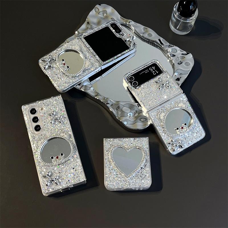 ✨Ốp Lưng Cho Samsung Galaxy Z FLIp 7 / Z Flip 6 / Z Flip 5 Kim Tuyến Có Gương Soi - BUM STORE GALAXY CASE