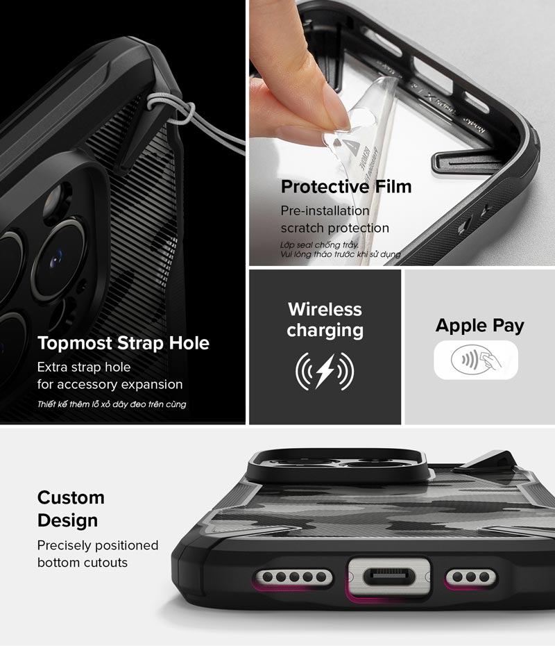 Sản phẩm ốp lưng iPhone 16 Pro Max/16 Pro/16 Plus/16 của Ringke dòng Fusion X với thiết kế chống sốc bảo vệ điện thoại của bạn cực tốt, cùng với những gờ nổi ở mặt lưng mang đến cảm giác cầm nắm vô cùng chắc chắn.