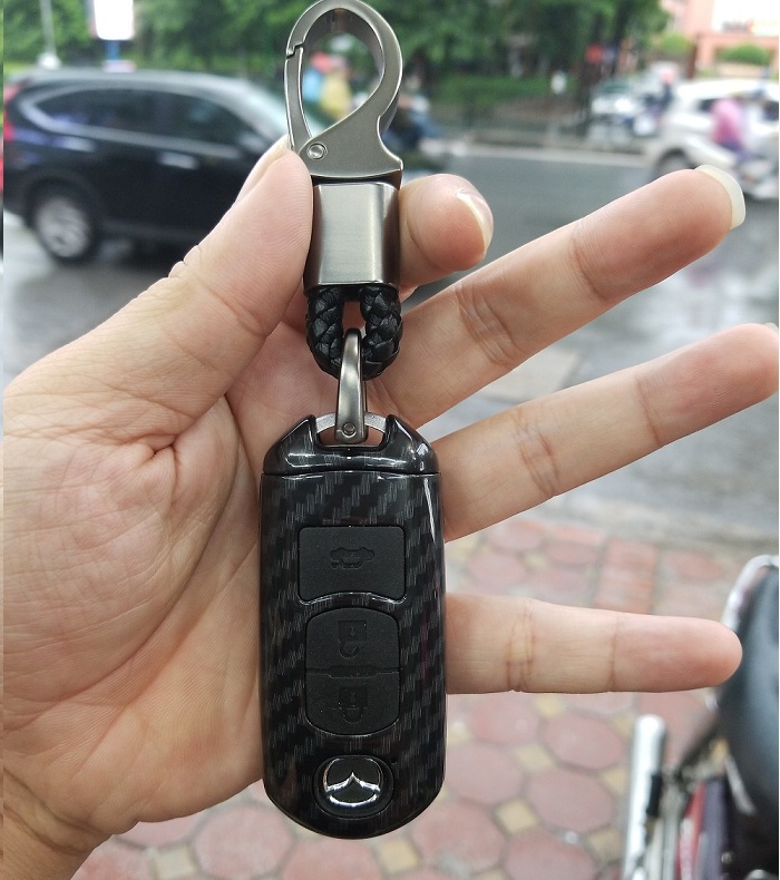 ✨Ốp nhựa carbon, bọc bảo vệ chìa khóa xe Mazda 3, 6, CX-5 kèm móc đeo INOX