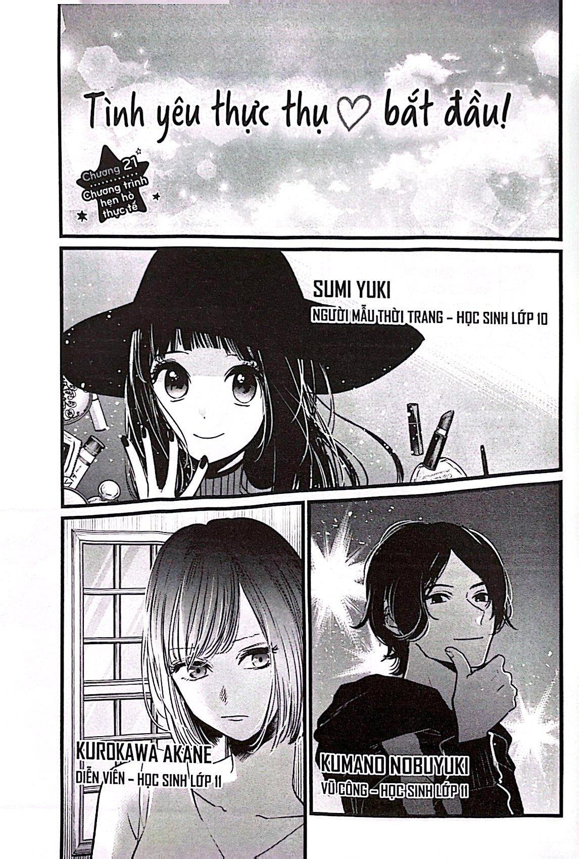 Mua tại TiktokOshi No Ko - Dưới Ánh Hào Quang - Tập 3 Aqua và Ruby nhập học vào ngôi trường có nhiều học sinh làm trong ngành giải trí. Aqua gặp lại Kana, một người bạn diễn từng đóng phim với cậu, và tìm được manh mối liên quan đến một nhà sản xuất từng quen biết Ai trước đây. Để có được thông tin về những mối quan hệ của Ai trong quá khứ, Aqua chấp nhận lời mời tham gia một chương trình hẹn hò thực tế.