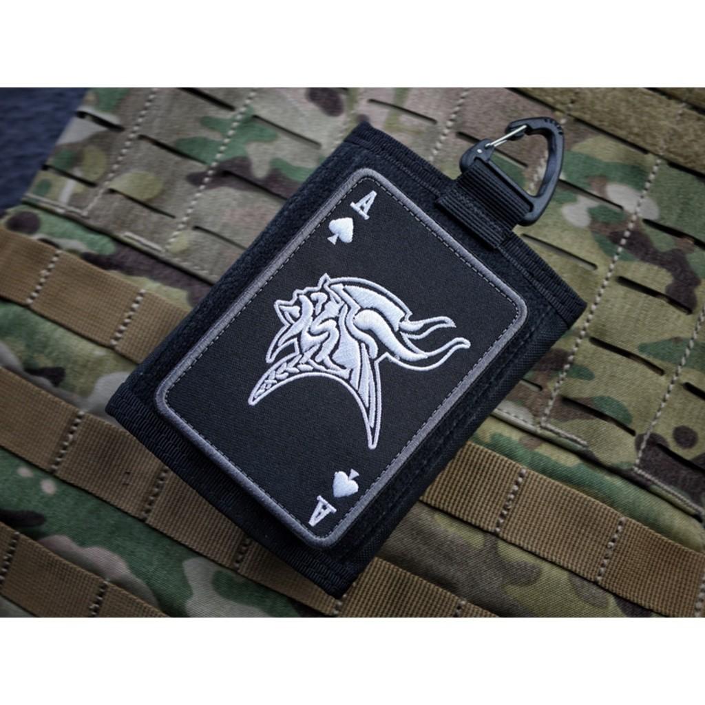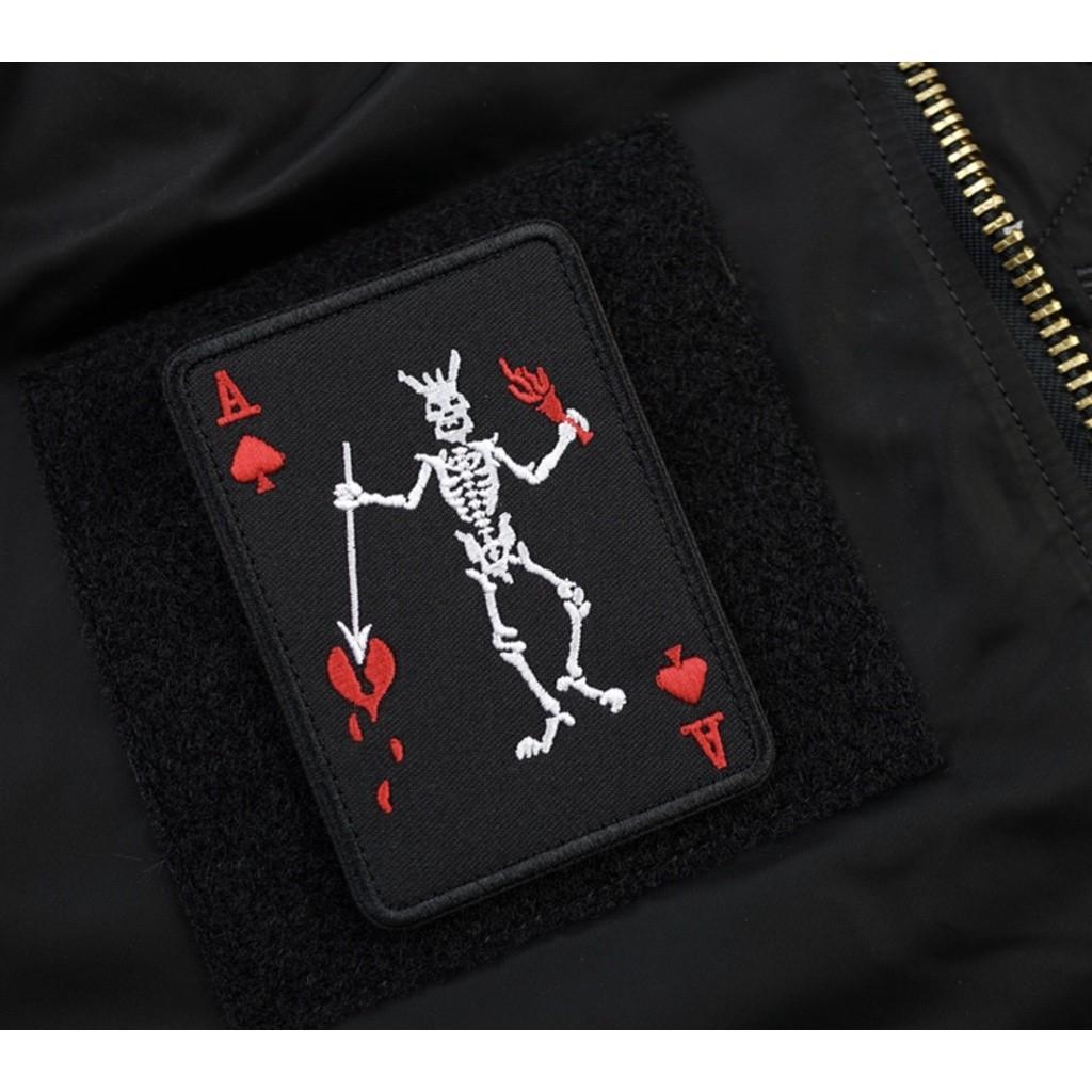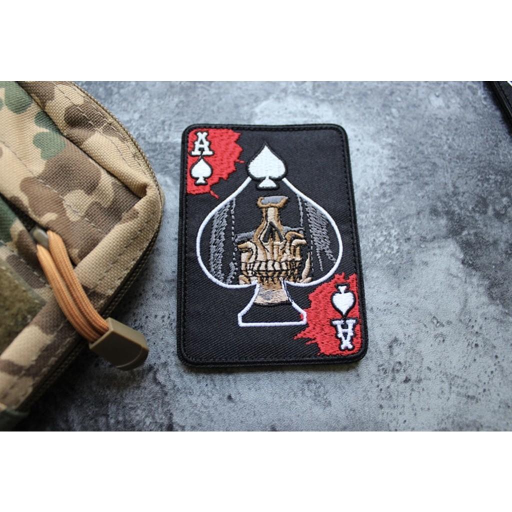 Mô hình này là một lá bài có hình ảnh con át bích và cho phép sử dụng biểu tượng này để truyền tải một thông điệp đáng sợ đến kẻ thù. Được làm bằng vải dệt , một loại vật liệu có khả năng chống mài mòn và tải trọng cao. Gắn vào quần áo, túi xách, ba lô hoặc thiết bị có móc khóa. Miếng vá này sẽ trở thành một phụ kiện tuyệt vời và nhấn mạnh cá tính của bạn.