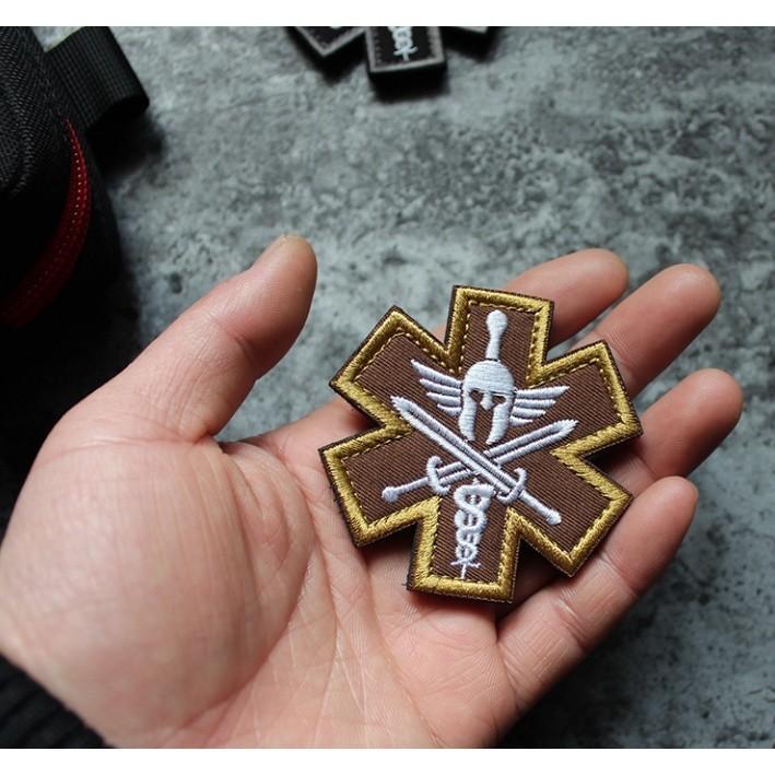 Patch phù hiệu y tế dán quần áo_ba lô túi xách Được thêu cực kỳ sắc sảo Bao gồm 2 phần : lớp vải thêu có gai + lớp rối dùng để may vào vải Nếu ba lô , nón , quần áo có sẵn lớp rối thì chỉ việc gắn vào là được , rất nhanh và tiện dụng