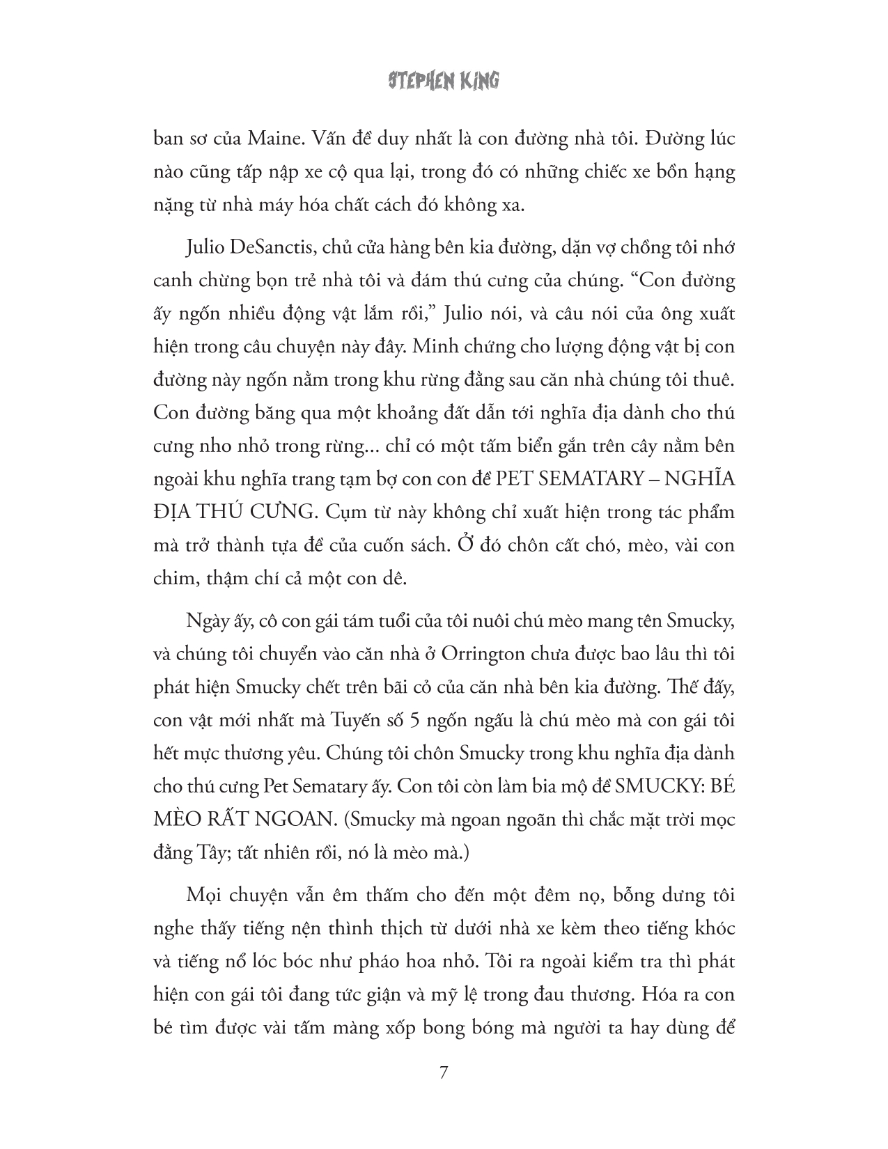 Stephen King là tác giả của hơn 60 cuốn sách, tất cả đều là những cuốn sách bán chạy nhất trên toàn thế giới. Các tác phẩm gần đây của ông bao gồm Fairy Tale, Billy Summers, If It Bleeds, The Institute, Elevation, The Outsider, Sleeping Beauties (viết chung với con trai Owen King), và bộ ba phim Bill Hodges: End of Watch, Finders Keepers và Mr. Mercedes (chiến thắng Giải thưởng Edgar cho Tiểu thuyết hay nhất). Cuốn tiểu thuyết 22/11/63 được The New York Times Book Review bình chọn là cuốn sách hay nhất của năm 2011 và giành được Giải thưởng Sách của Thời báo Los Angeles cho thể loại Bí ẩn / Kinh dị. Các tác phẩm The Dark Tower, It, Pet Sematary và Doctor Sleep của ông đã được chuyển thể thành phim, với It hiện là phim kinh dị có doanh thu cao nhất mọi thời đại. Ông là người đã nhận được Giải thưởng Thành tựu trọn đời của Hiệp hội Nhà xuất bản Âm thanh năm 2020, Giải thưởng Dịch vụ Văn học PEN Hoa Kỳ năm 2018, Huy chương Nghệ thuật Quốc gia năm 2014 và Huy chương của Quỹ Sách Quốc gia năm 2003 cho những đóng góp xuất sắc cho nền văn học Hoa Kỳ. Anh sống ở Bangor, Maine, với vợ, tiểu thuyết gia Tabitha King.