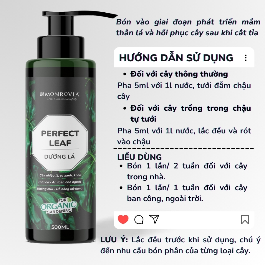 ✨Phân bón DƯỠNG LÁ MONROVIA hữu cơ giúp lá xanh mướt, tươi tốt dành cho cây cảnh, dung tích 500ml