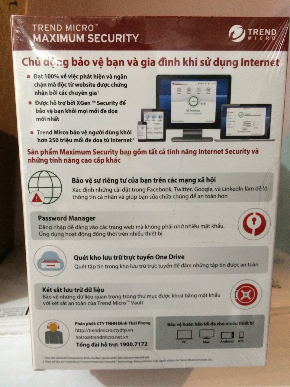 - Phần Mềm Diệt Virus Trend Micro Internet Security 11 - 2017 - Dùng cho 3 PC Win/Mac có thể giúp ngăn chặn các mã hóa dữ liệu, bảo vệ máy bạn tốt hơn, tránh