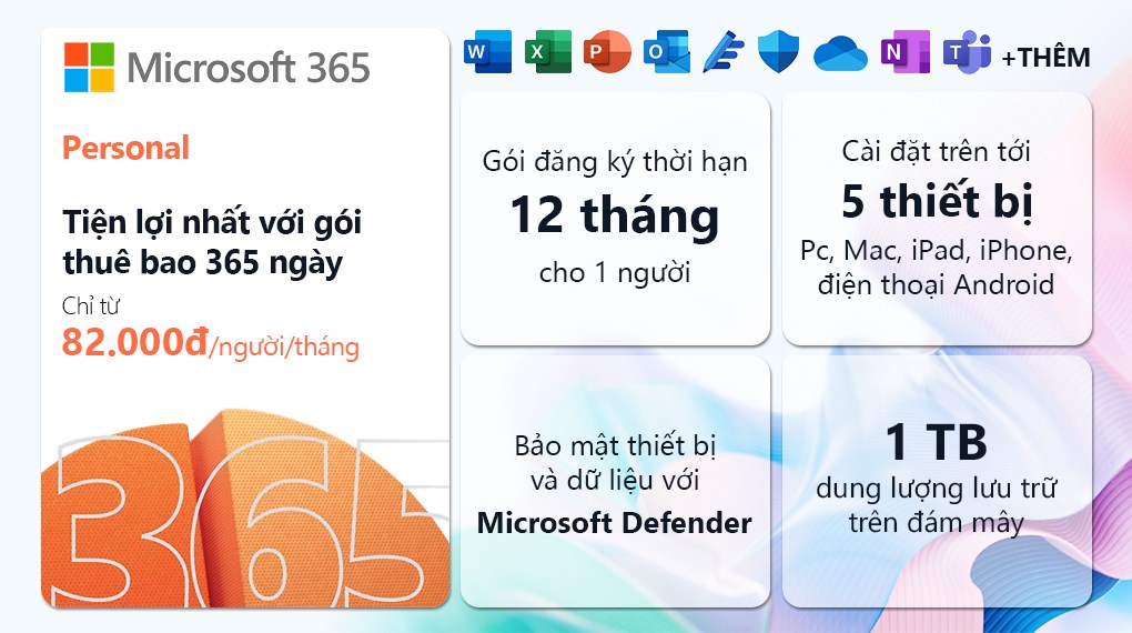 Microsoft 365 Personal là gói phần mềm văn phòng toàn diện của Microsoft, thiết kế đặc biệt cho nhu cầu cá nhân. Với bộ công cụ đa dạng và tính năng vượt trội, Microsoft 365 Personal không chỉ nâng cao hiệu quả làm việc mà còn mang lại trải nghiệm tối ưu cho người dùng.