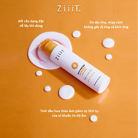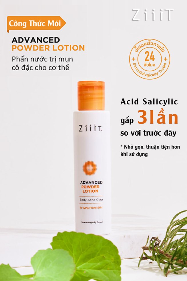 - Allantion và Clamine - giúp ngăn ngừa kích ứng 3.Loại da phù hợp & đối tượng sử dụng -Sản phẩm phù hợp với mọi loại da -Phù hợp mọi đối tượng gặp vấn đề về mụn, thâm, sẹo do mụn 4.Giải pháp cho các vấn đề: -Bật tone trắng da nhanh trong trang điểm -Làm mờ thâm, ngừa sẹo sau mụn hiệu quả -Kiểm soát bã nhờn -Giảm mụn 5.Ưu điểm nổi bật: -Gọn – tiện lợi mang theo bất kì lúc nào -Không kén loại da sử dụng -Không gây kích ứng da 6.Hướng dẫn sử dụng: Bước 1 :Lắc đều ZiiiT Advanced Powder Lotion trước khi sử dụng Bước 2 :Chấm kem bật tone ZiiiT Advanced Powder Lotion lên 5 điểm tọng tâm trên da mặt Bước 3 :Thoa đều và kết hợp massage mặt cho Lotion thấm nhanh lên da. 7.Bảo quản: -Nơi khô ráo, thoáng mát. -Tránh ánh nắng trực tiếp. -Để xa tầm tay trẻ em. -Đậy nắp kín sau khi sử dụng. -Dung tích: 40ml