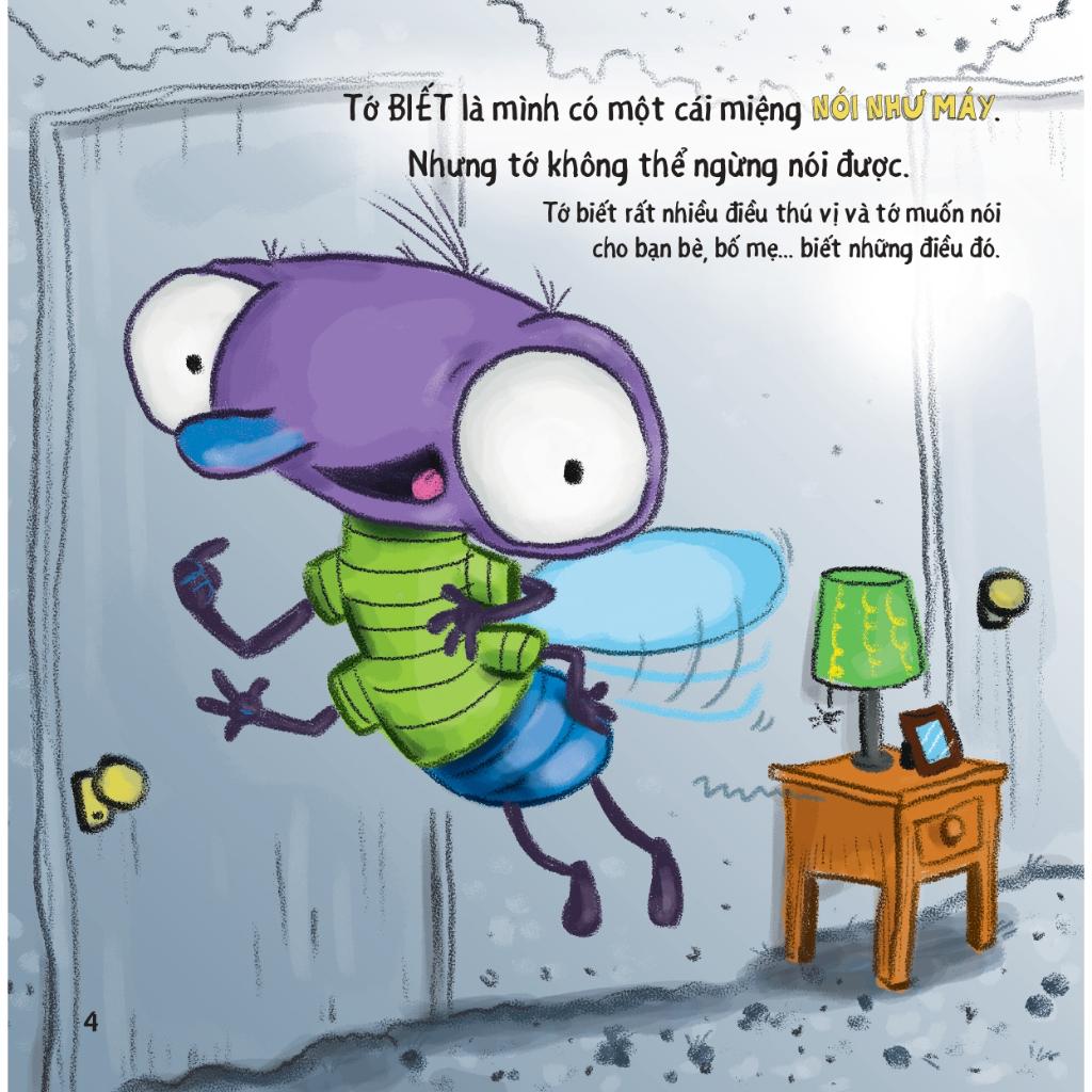Đừng nói như máy!: Câu chuyện kể về bạn ruồi nhỏ đáng yêu rất thích nói chuyện và cậu có thể nói như máy, nói không ngừng nghỉ, không dừng lại để lắng nghe bất kì ai nói. Thế rồi ngày nọ, ruồi nhỏ đau đầu, choáng váng khi gặp một cô bạn còn hay nói hơn mì Lúc ấy, ruồi nhỏ đã hiểu ra: Khi trò chuyện, cậu nên nói ít hơn và lắng nghe nhiều hơn.