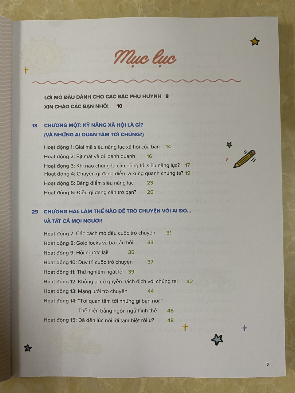 Phát triển kỹ năng xã hội giúp bạn tự tin làm chủ các tình huống xã hội ở nhà, ở trường và bất cứ nơi đâu, từ kỹ năng duy trì cuộc trò chuyện tới cách ứng xử lịch sự trên bàn ăn. Cuốn sách này mang tới 50 hoạt động tuyệt vời giúp hành trình xây dựng và rèn luyện các “siêu năng lực xã hội” của bạn trở nên cực kỳ thú vị.