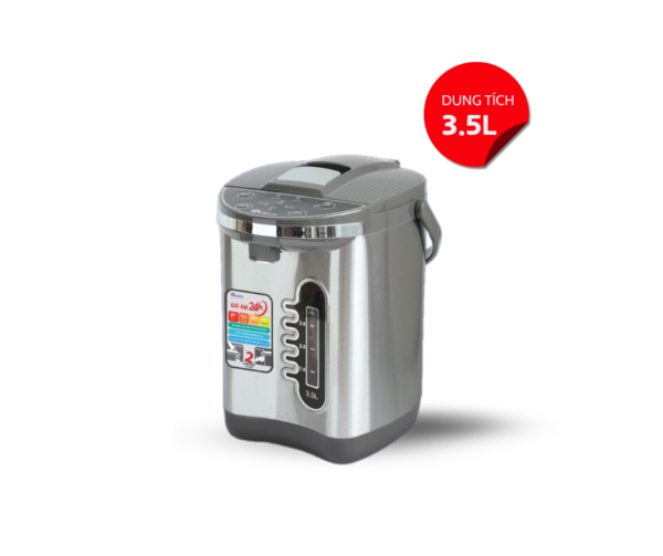 THÔNG SỐ KỸ THUẬT - Điện áp: 220V - 50Hz - Công suất: 750W - Dung tích: 3.6L - Thiết kế thân bình thủy: 3 lớp cách nhiệt - Chất liệu vỏ bình: Inox cao