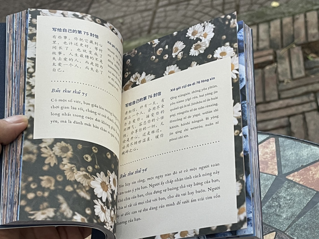 Và cũng không chỉ dừng lại ở việc mang nội dung ý nghĩa, sâu sắc nhất, những lá thư được chọn lọc kỹ càng trong sách còn được trình bày dưới phương thức song ngữ Trung – Việt như một cách biểu đạt trọn vẹn tâm tư và tình cảm của tác giả đến với độc giả, để cuốn sách không chỉ là một phương thuốc chữa lành hữu hiệu cho tâm hồn mà còn là một ấn phẩm tuyệt vời cho việc trau dồi ngoại ngữ, bổ sung kiến thức, để bạn không chỉ có một vẻ ngoài rạng rỡ mà còn tỏa sáng cả trong nội tâm, làm một người không chỉ mạnh mẽ còn có tài hoa, giúp bạn nở rộ, làm chủ sinh mệnh của chính mình.
