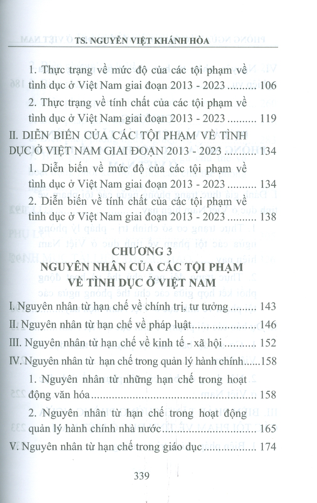 Cuốn sách “Phòng ngừa các tội phạm về tình dục ở Việt Nam” của Tiến sĩ Nguyễn Việt Khánh Hòa tiếp cận trên cơ sở lý thuyết chuyên sâu về phòng ngừa tội phạm gắn