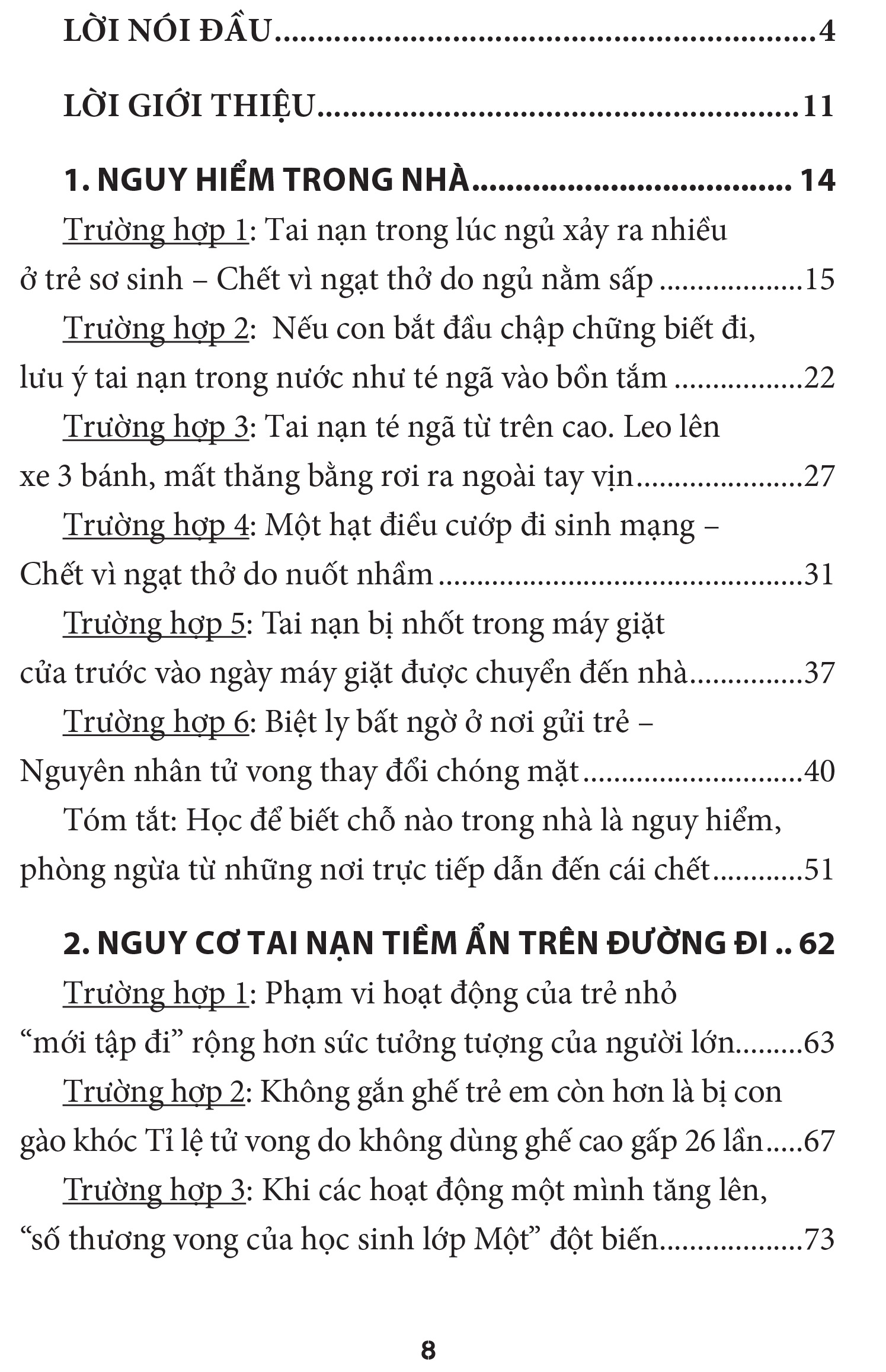 Được biên tập lại từ loạt phóng sự ấy, Phòng tránh tai nạn ở trẻ nhỏ đề cập đến các nguy cơ tai nạn khác nhau theo giai đoạn trưởng thành của trẻ, từ đó đưa ra các biện pháp phòng tránh có thể áp dụng tại nhà, tại trường học, và trên toàn xã hội.