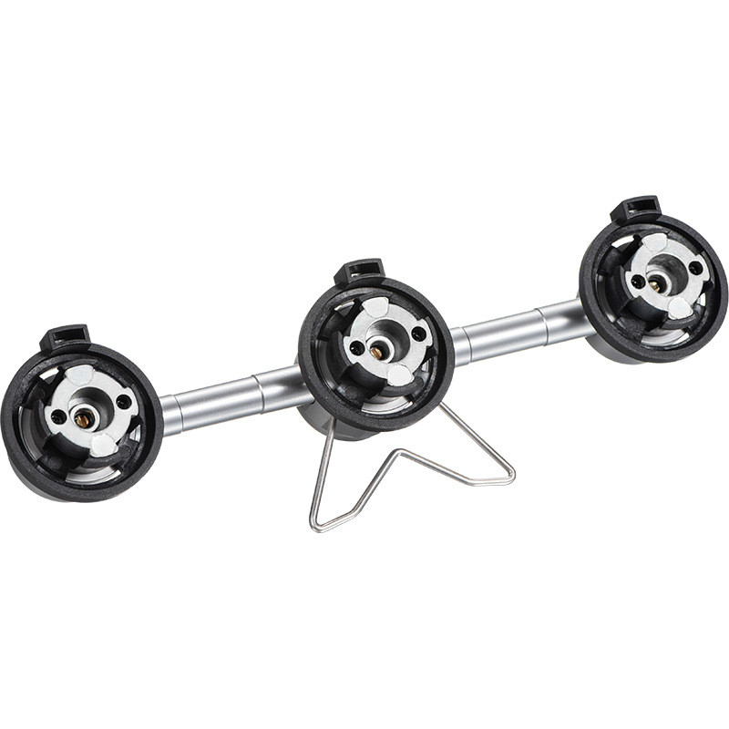 - Xuất xứ: Trung Quốc Chất liệu hợp kim nhôm chống gỉ sét, có độ bền cao, cứng cáp, chịu lực, khó bị biến dạng bởi lực bẻ, uốn, chèn ép thông thường. Chốt cài đầu bình gas bằng nhựa tổng hợp. Gia công chuẩn xác không bị rò rỉ khí đốt trong quá trình sử dụng. Có chân đỡ đặt 3 bình gas tư thế nằm ngang. Khoảng cách giữa 3 đầu Cái đầu nối cài: 3.7 cm. Đầu Đực đầu nối vặn có nắp bảo vệ. Hiện nay, hầu hết các loại bếp gas và phụ kiện liên quan đến việc sử dụng nhiên liệu khí đốt đóng bình đều được chia làm 2 loại đầu nối chính: Đầu nối cài (Bình gas lon mini thông dụng) và Đầu nối vặn (Bình gas tròn mini Fire Maple, Maxsun). Campingmoon Z30 là phụ kiện để chia 1 đầu Đực đầu nối vặn ra 3 đầu Cái đầu nối cài.