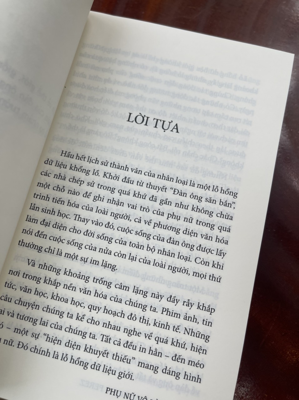Phụ nữ vô hình ( Invisible women) ------------ PHỤ NỮ VÔ HÌNH - BẤT BÌNH ĐẲNG TỪ KHOẢNG TRỐNG DỮ LIỆU Hầu hết lịch sử thành văn của nhân loại là một lỗ hổng